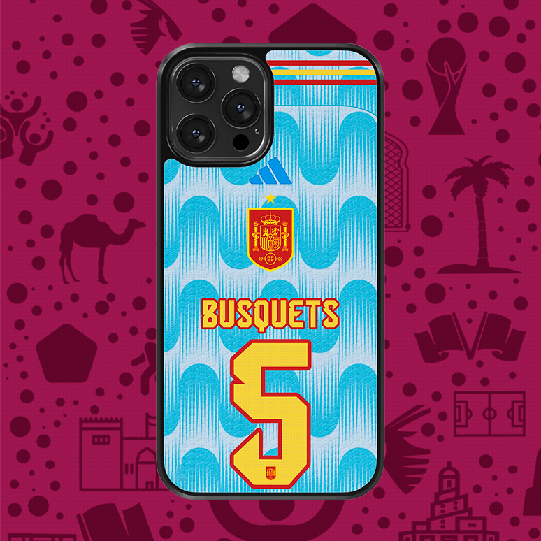 Diseño visitante de la selección española con la que disputó la copa del mundo Qatar 2022. Cuenta con detalles idénticos al jersey físico y personalizado con la tipografía oficial.